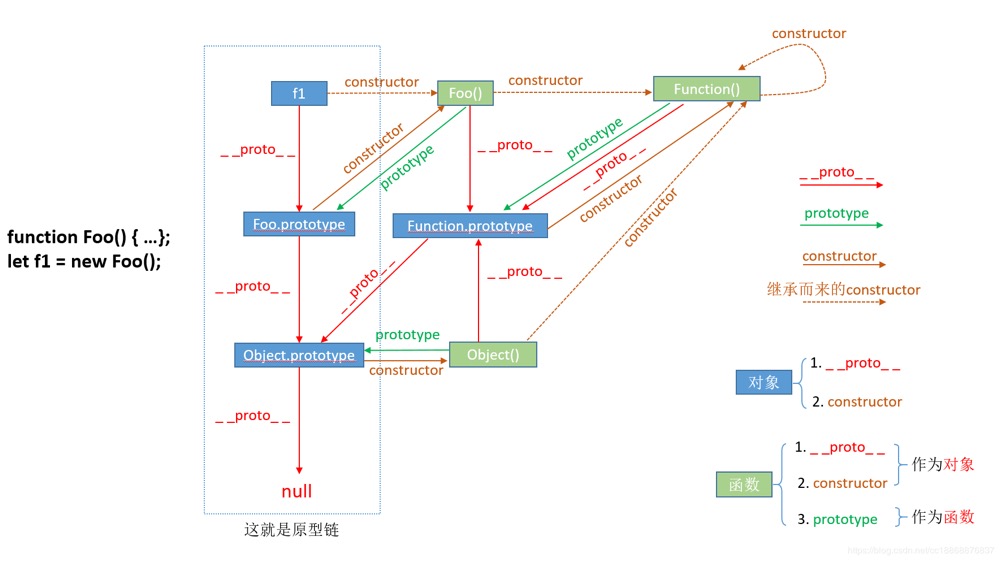 | 用于实现基于原型的继承与属性的共享 | 构成原型链,同样用于实现基于原型的继承 |