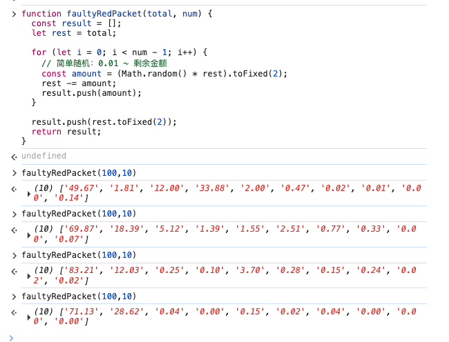 - 确保剩余金额足够剩余人数每人至少0.01元